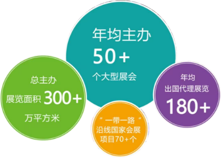 ????中機(jī)國際每年境內(nèi)外主承辦 50 余場展會,展會面積超 300 萬平方米,辦展數(shù)量和面積在《中國境內(nèi)組展機(jī)構(gòu) 50 強(qiáng)》排行榜中名列前茅 ;每年組織出國代理展 180 個(gè) ;連續(xù) 8 年在中國貿(mào)促會發(fā)布的《中國展覽經(jīng)濟(jì)發(fā)展報(bào)告》排名中組展項(xiàng)目數(shù)量位列全國第一,是中國最大的海外組展機(jī)構(gòu)之一 ;擁有全球的渠道和網(wǎng)絡(luò),出展足跡遍 布 100 多個(gè)國家、300 多個(gè)城市,累積 3100 多次國際展覽經(jīng)驗(yàn)。